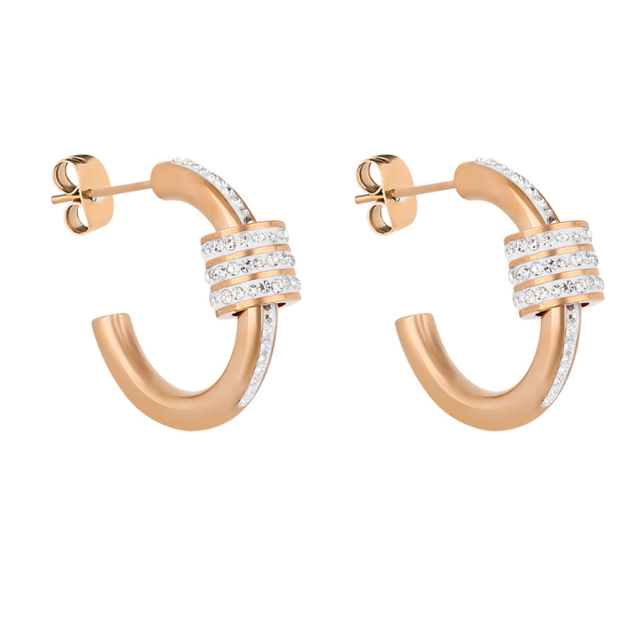 Дамски обеци на винт с декорация от нежни кристали. Моделът е изработен от неръждаема стомана.