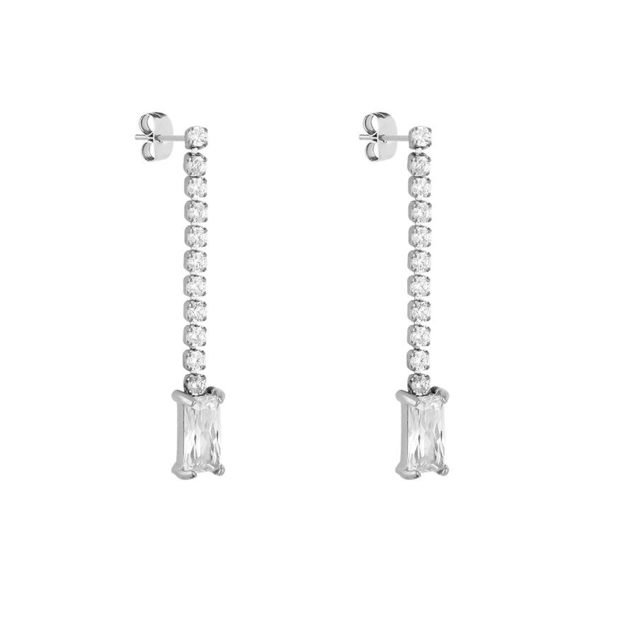 Висящи дамски обеци с декорация отт бляскави кристали, изработени от неръждаема стомана.