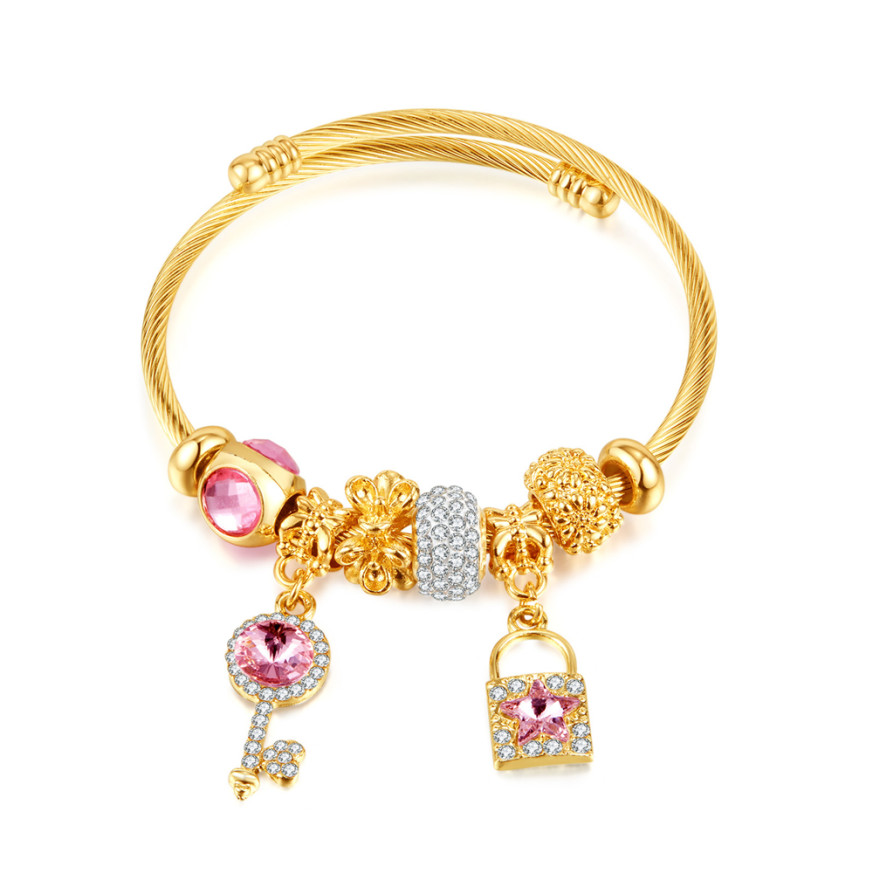 Страхотен модел дамска гривна Lee Cooper с интересен дизайн, изработена от неръждаема стомана с твърда основа. Гривната е с атрактивни декоративни елементи и висулки, инкрустация от бляскави кристали.