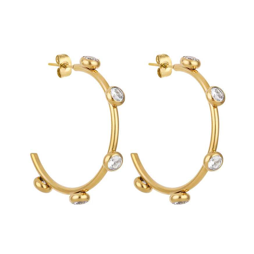 Модерни дамски обеци Daniel Klein с интересен дизайн, изработени от неръждаема стомана с декорация от бляскави кристали.