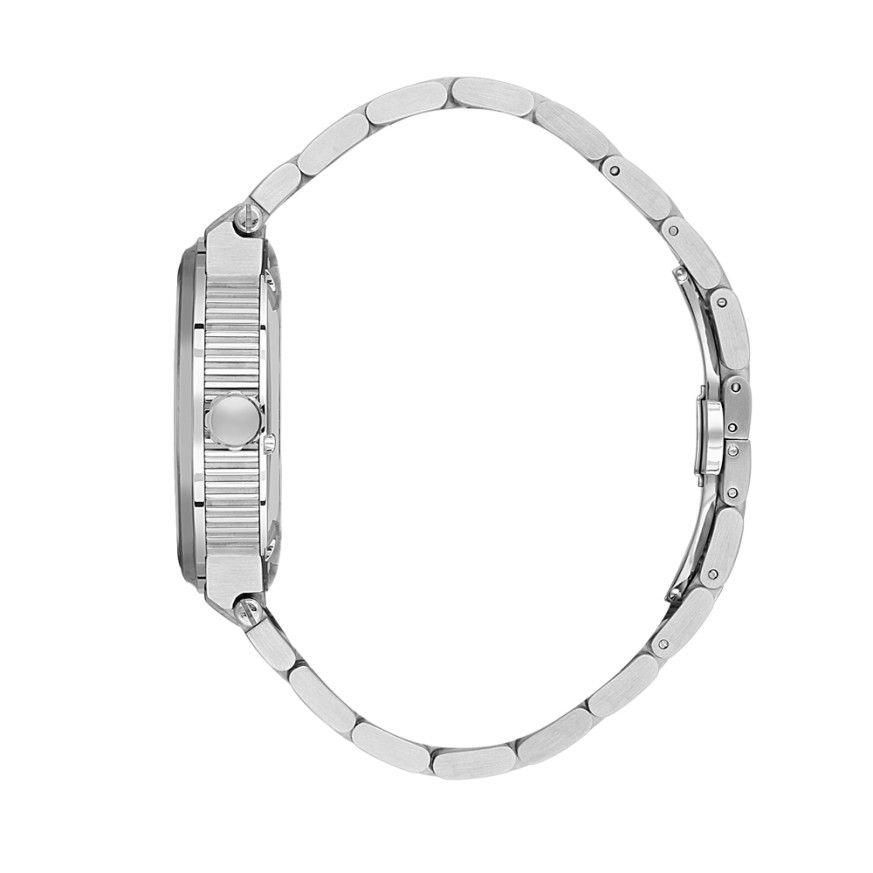 Мъжки часовник с впечатляващ дизайн от колекцията Luxury. Моделът е с корпус и верижка от неръждаема стомана. Дисплеят е аналогов с видим баланс. Стъклото е минерал-кристал. Диаметър на корпуса 43.5 мм. Часовникът се задвижва от автоматичен механизъм 82S0. Водоустойчивост 5 ATM - допускат се леки пръски и взимане на душ, не се препоръчва обилно мокрене.