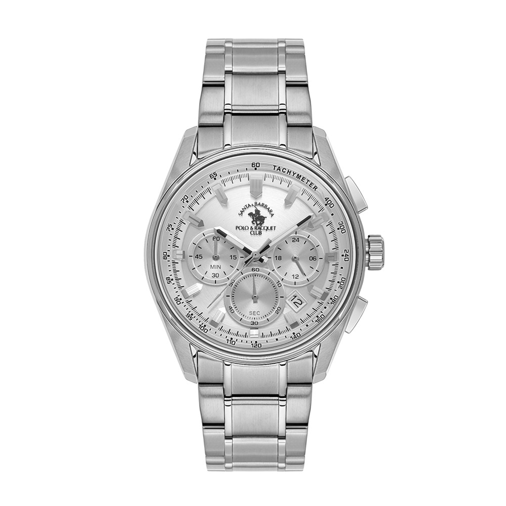 Спортно-елегантен мъжки часовник от колекцията Legend. Сребрист дисплей тип хронограф с показател за дата между четири и пет часа и тахиметрична скала на безела. Стъкло минерал-кристал. Корпус и верижка от неръждаема стомана. Диаметър на корпуса 42 мм. Задвижва се от кварцов механизъм. Водоустойчивост 5 ATM - допускат се леки пръски и взимане на душ, не се препоръчва обилно мокрене.