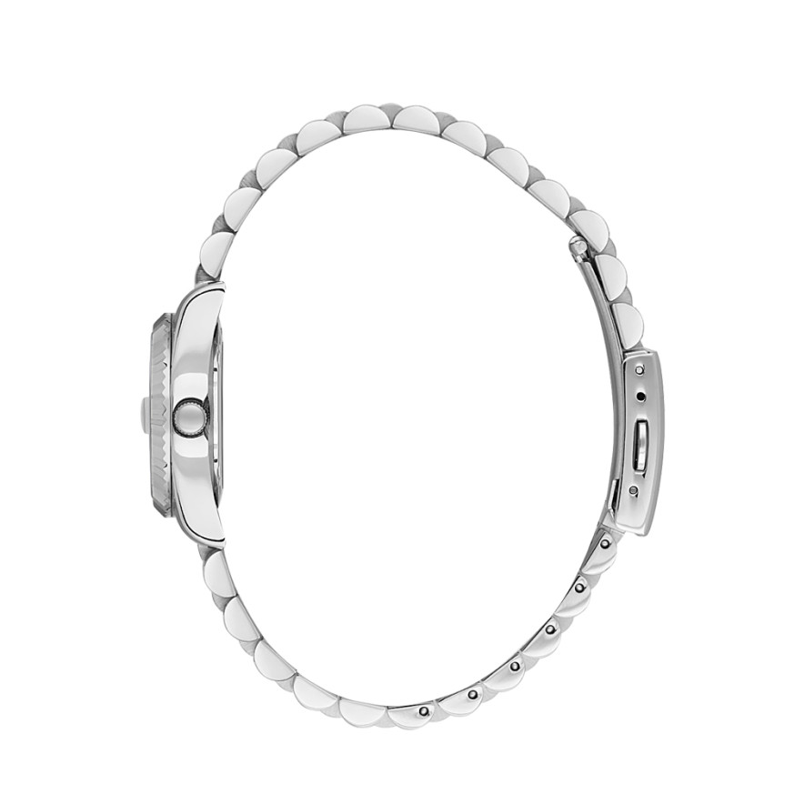 Красив дамски часовник от колекцията Unique. Моделът е с корпус и верижка от неръждаема стомана. Седефен аналогов дисплей с показател за дата и декорация от нежни кристали по часовите маркери. Диаметър на корпуса 28 мм. Стъкло минерал-кристал. Задвижва се от кварцов механизъм. Водоустойчивост 3 ATM - допускат се леки пръски, не се препоръчва обилно мокрене.