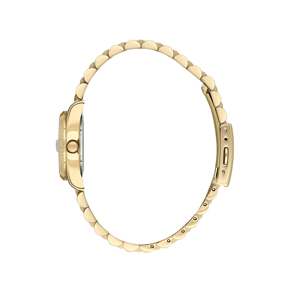 Красив дамски часовник от колекцията Unique. Моделът е с корпус и верижка от неръждаема стомана. Седефен аналогов дисплей с показател за дата и декорация от нежни кристали по часовите маркери. Диаметър на корпуса 28 мм. Стъкло минерал-кристал. Задвижва се от кварцов механизъм. Водоустойчивост 3 ATM - допускат се леки пръски, не се препоръчва обилно мокрене.