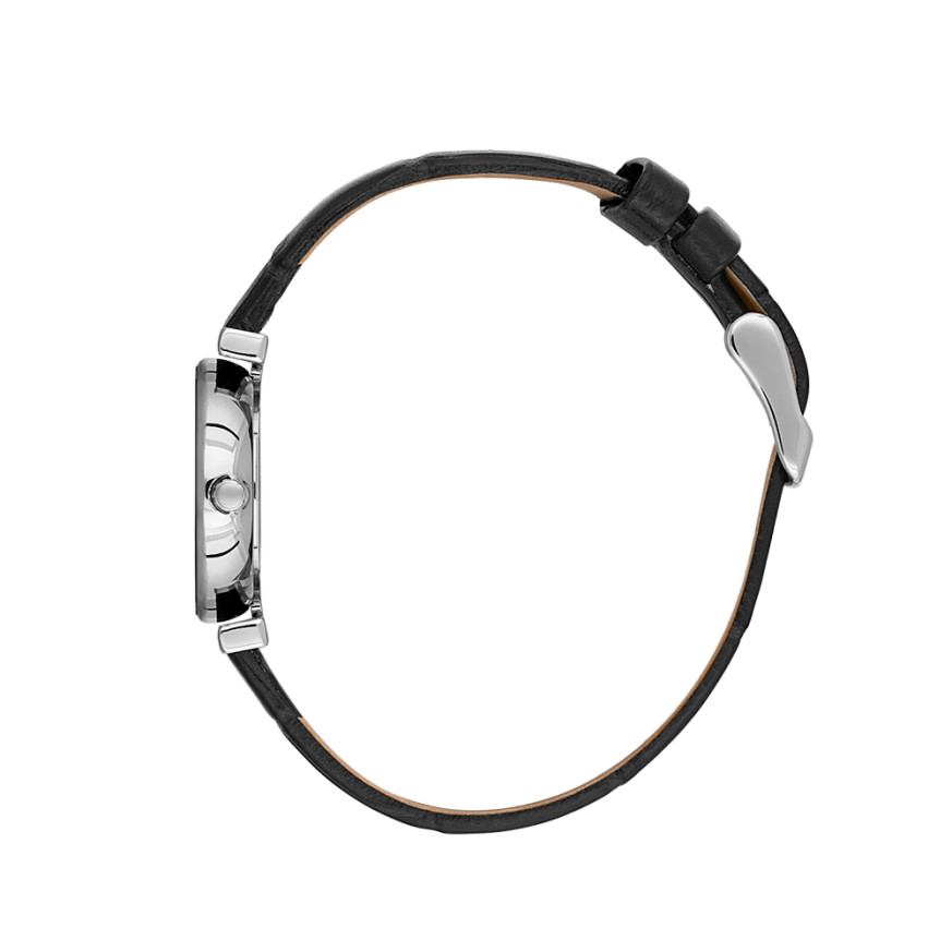 Стилен дамски часовник от колекцията Unique. Корпус от неръждаема стомана в комбинация с кожена каишка. Сребрист аналгов дисплей с декорация от нежни кристали по часовите маркери. Диаметър на корпуса 24 мм. Стъкло минерал-кристал. Задвижва се от кварцов механизъм. Водоустойчивост 3 ATM - допускат се леки пръски, не се препоръчва обилно мокрене.