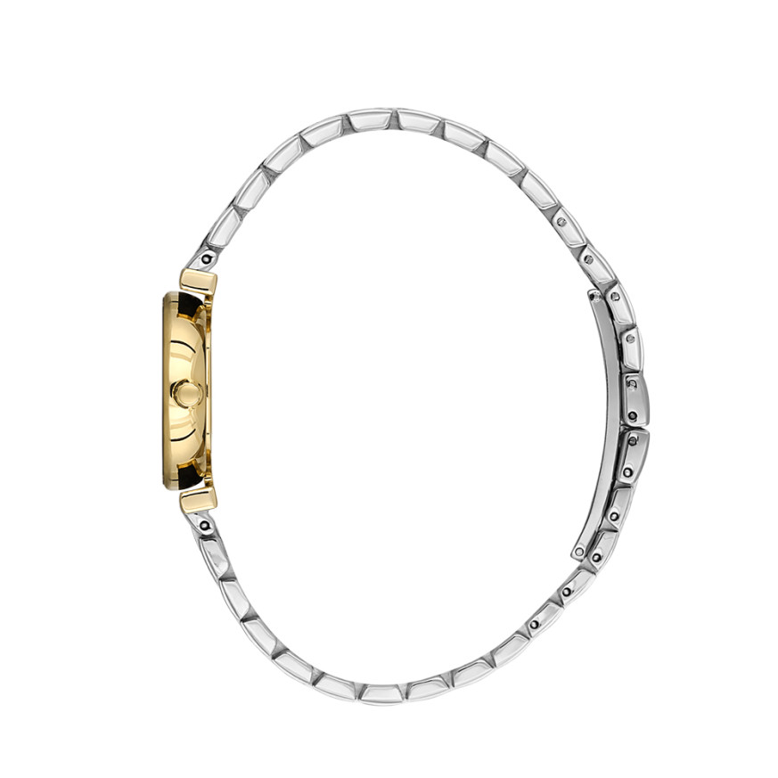 Стилен дамски часовник от колекцията Unique. Корпус и верижка изработени от неръждаема стомана. Сребрист аналгов дисплей с декорация от нежни кристали по часовите маркери. Диаметър на корпуса 24 мм. Стъкло минерал-кристал. Задвижва се от кварцов механизъм. Водоустойчивост 3 ATM - допускат се леки пръски, не се препоръчва обилно мокрене.