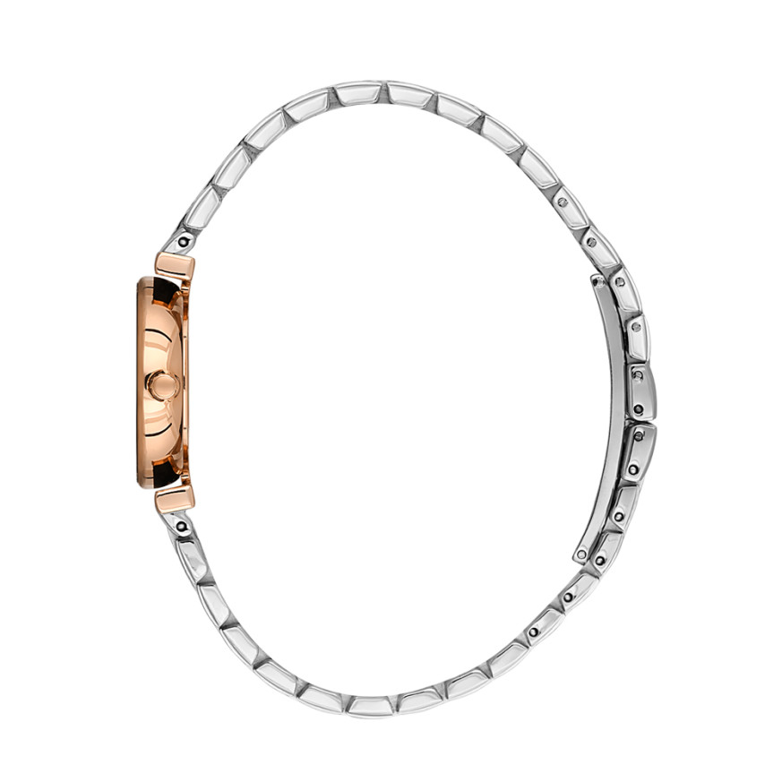 Стилен дамски часовник от колекцията Unique. Корпус и верижка изработени от неръждаема стомана. Сребрист аналгов дисплей с декорация от нежни кристали по часовите маркери. Диаметър на корпуса 24 мм. Стъкло минерал-кристал. Задвижва се от кварцов механизъм. Водоустойчивост 3 ATM - допускат се леки пръски, не се препоръчва обилно мокрене.