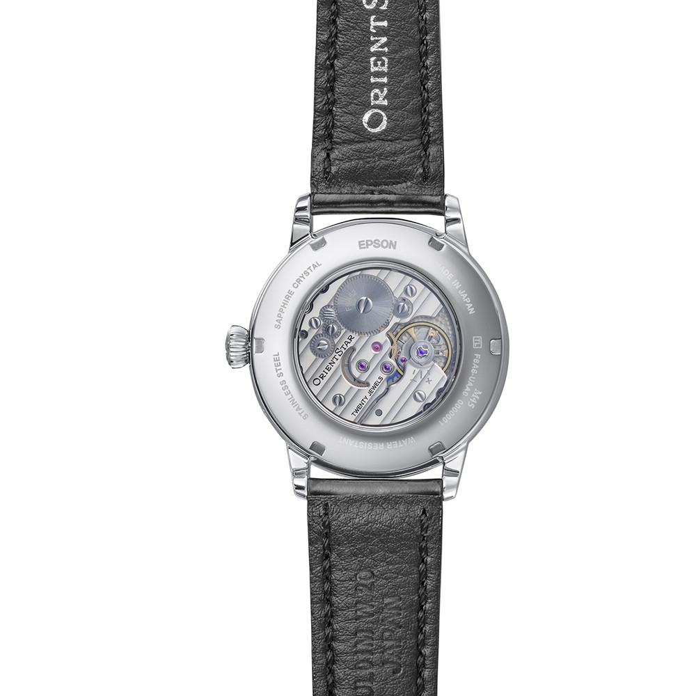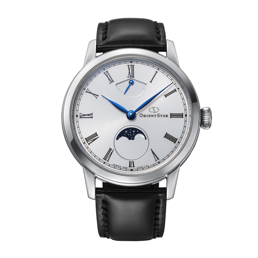 Часовник Orient Star RE-BW0004S от колекцията M-Collection /M45 F8/ съчетава елегантност и висока часовникарска прецизност. Минималистичният циферблат изразява темата за „грациозното течение на времето“ и е оборудван с индикатор за резерв на мощността и дисплей за лунните фази. Корпусът от неръждаема стомана и каишката от естествена кожа създават хармоничен баланс между здравина и комфорт. Сапфир-кристалът със супер антирефлексно покритие осигурява ясна видимост. Автоматичният механизъм F8A62 с 20 камъка и впечатляващ 70-часов резерв може да се наблюдава през прозрачния гръб. Водоустойчивостта до 5 ATM прави модела подходящ за ежедневна елегантност и специални поводи.