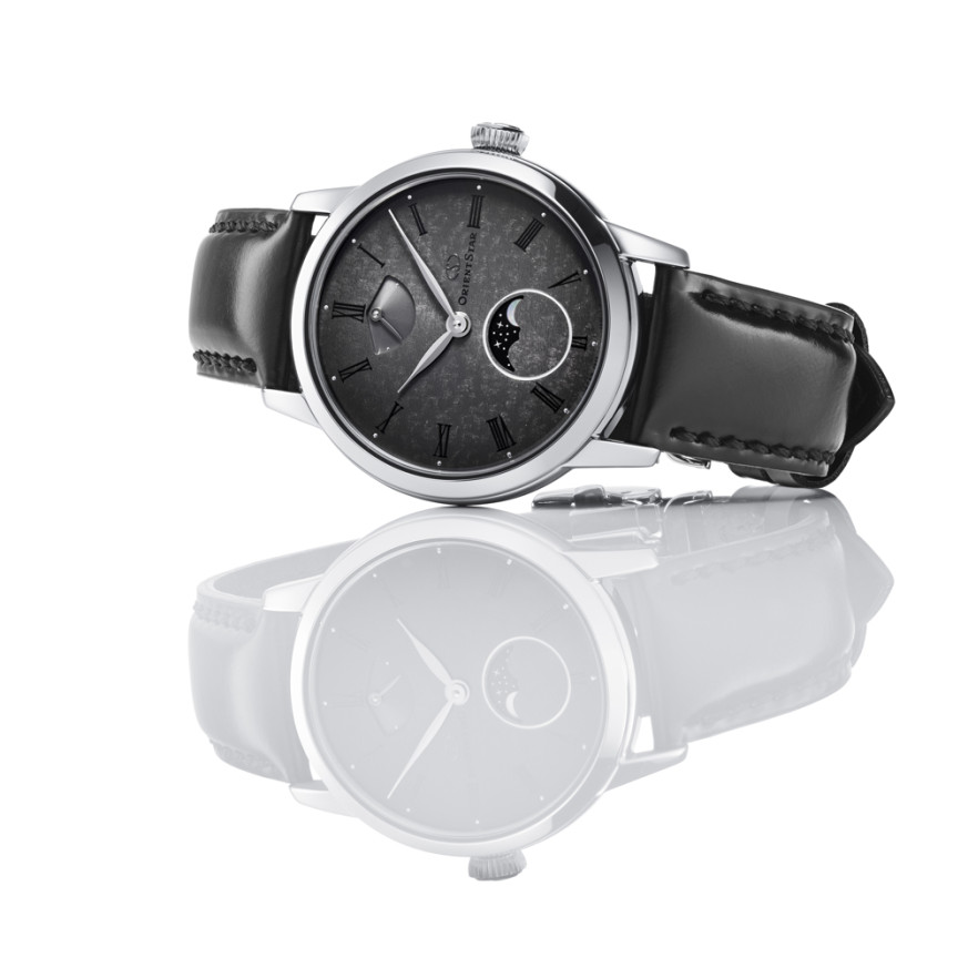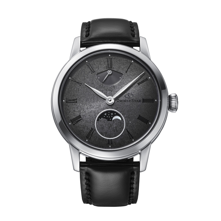 Часовник Orient Star RE-BW0005N от колекцията M-Collection /M45 F8/ впечатлява със стилен минималистичен дизайн, който символизира грациозното течение на времето. Циферблатът разполага с индикатор за резерв на мощността и дисплей за лунните фази, придавайки елегантен и технически характер. Корпусът от неръждаема стомана е съчетан с каишка от естествена кожа, а сапфир-кристалът със супер антирефлексно покритие осигурява кристална видимост. Автоматичният механизъм F8A62 с 20 камъка и впечатляващ 70-часов резерв на мощността може да бъде наблюдаван през прозрачния гръб. Водоустойчивостта до 5 ATM прави този модел подходящ за всекидневие и елегантни поводи.