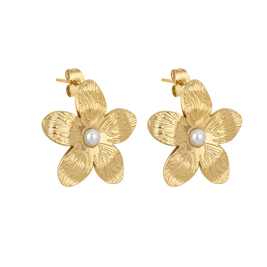 Красиви дамски обеци с нежен дизайн във формата на цвете, изработени от неръждаема стомана.