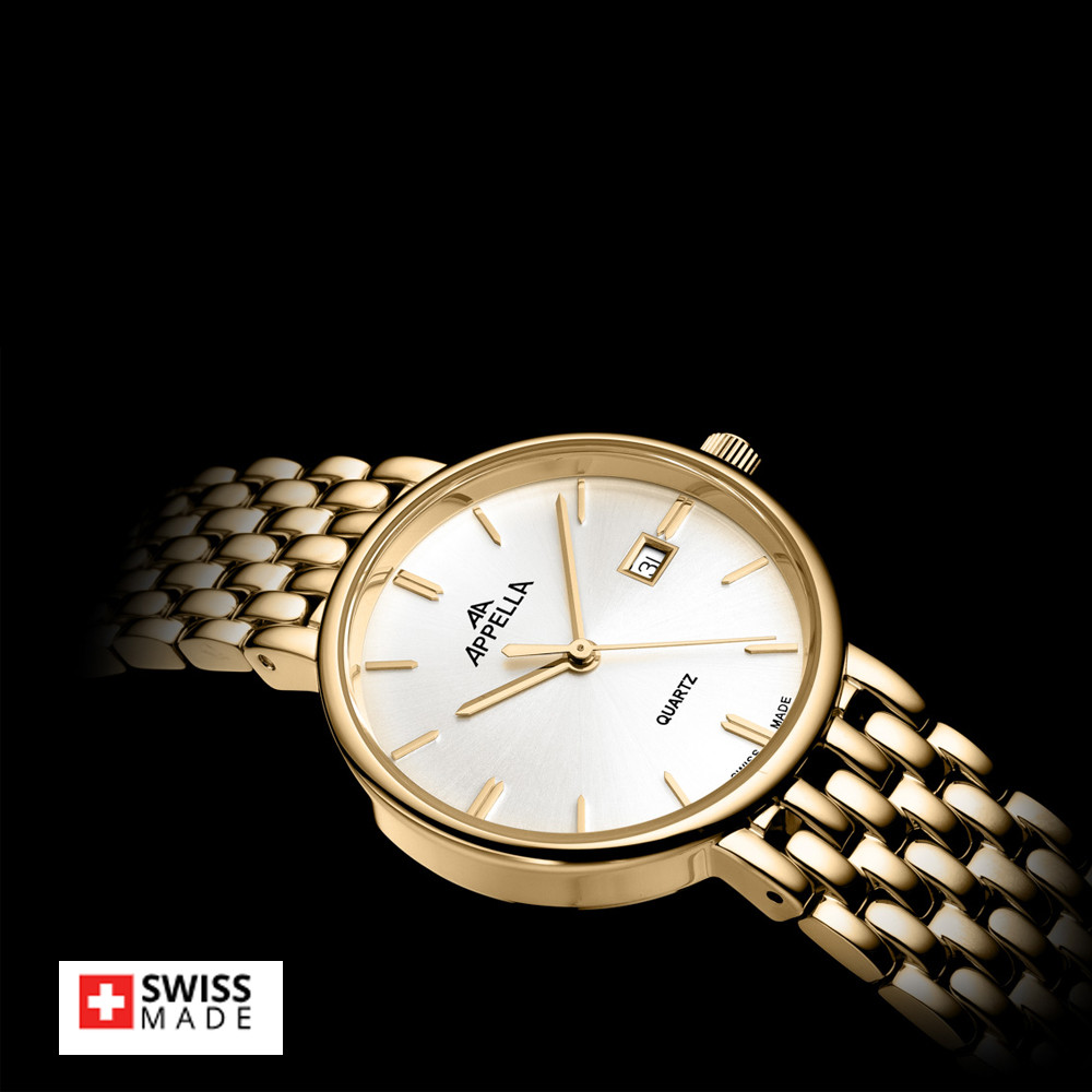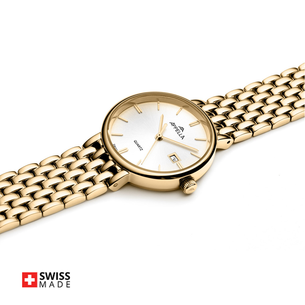 Appella L32007.1113Q е елегантен дамски часовник с корпус и верижка изработени от неръждаема стомана. Циферблат в сребрист цвят с индикатор за дата. Стъкло сапфир-кристал. Задвижва се от кварцов механизъм RONDA 785 Swiss Made. Диаметър на корпуса 30 мм. Водоустойчивост 3 ATM - допускат се леки пръски, не се препоръчва обилно мокрене.
