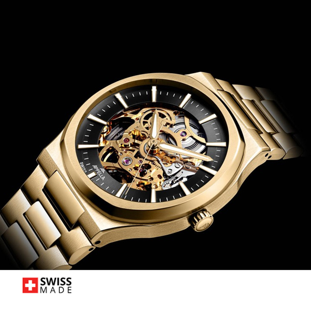 Мъжки часовник Appella L12006.1116AS впечатлява със своята уникална визия. Моделът е с корпус и верижка изработени от неръждаема стомана. Дисплеят е тип скелетон с модерен и стилен дизайн. Стрелките и индексите са с луминесцентно покритие. Стъклото е  сапфир-кристал с антирефлексно покритие. Часовникът се задвижва от автоматичен механизъм Catena SA800 Swiss made. През прозрачния гръб на корпуса може да се наблюдава механизма на часовника.  Диаметър на корпуса 40 мм. Водоустойчивост 5 ATM - допускат се леки пръски и взимане на душ, не се препоръчва обилно мокрене.
