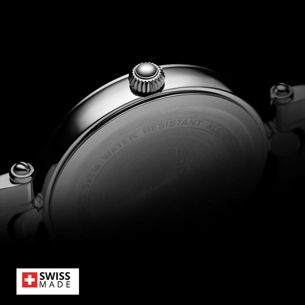 Елегантен дамски часовник AppellaL L50002.5145DQ с нежен дизайн. Циферблат в син цвят, украсен с 12 диаманта и допълнен с индикатор за дата. Корпусът и верижката са изработени от неръждаема стомана. Стъклото е  сапфир-кристал. Задвижва се от кварцов механизъм ETA F04 Swiss Made. Диаметър на корпуса 31 мм. Водоустойчивост 3 ATM - допускат се леки пръски, не се препоръчва обилно мокрене.