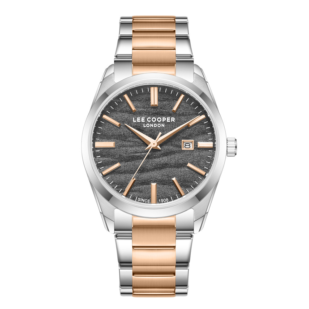 Мъжки часовник Lee Cooper с класическа ежедневна визия. Моделът е с корпус от супер метал и верижка от неръждаема стомана. Дисплеят е аналогов с показател за дата. Диаметър на корпуса 41 мм. Стъкло минерал-кристал. Часовникът се задвижва от кварцов механизъм. Водоустойчивост 5 ATM - допускат се леки пръски и взимане на душ, не се препоръчва обилно мокрене.