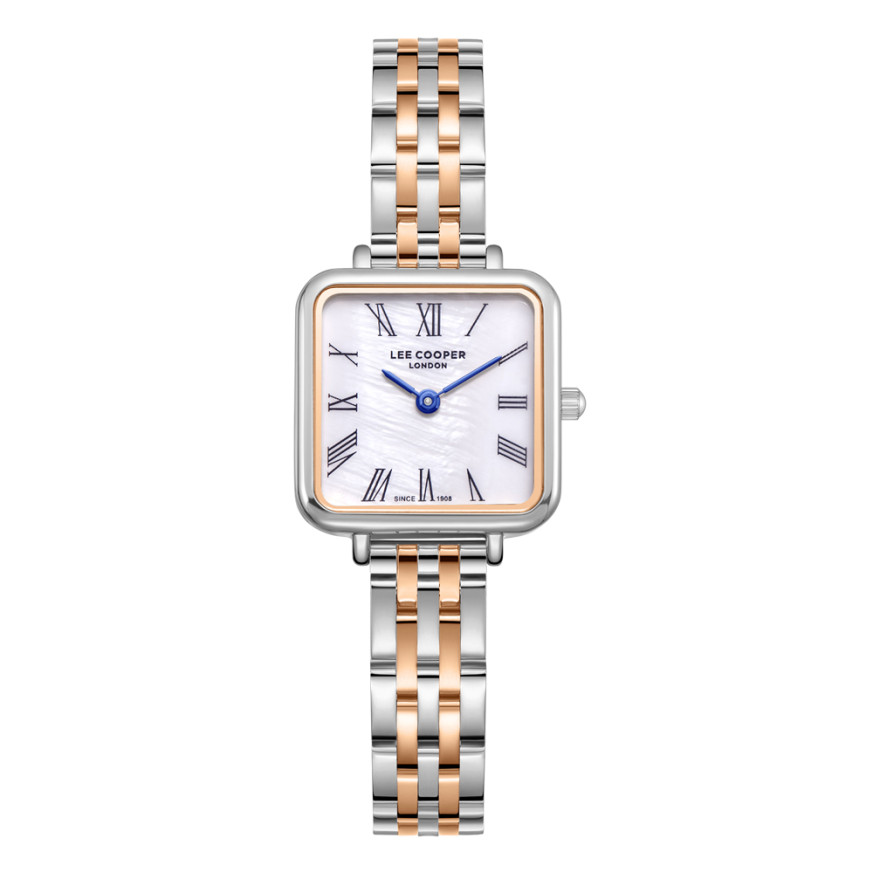 Класически модел дамски часовник Lee Cooper с изискана визия. Корпус изработен от супер метал. Верижка от неръждаема стомана. Аналогов дисплей в красив седефен цвят със сини стрелки и черни римски цифри. Стъкло минерал-кристал. Задвижва се от кварцов механизъм. Водоустойчивост 3 ATM - допускат се леки пръски, не се препоръчва обилно мокрене.