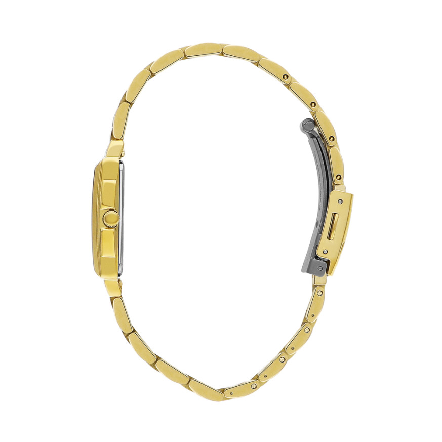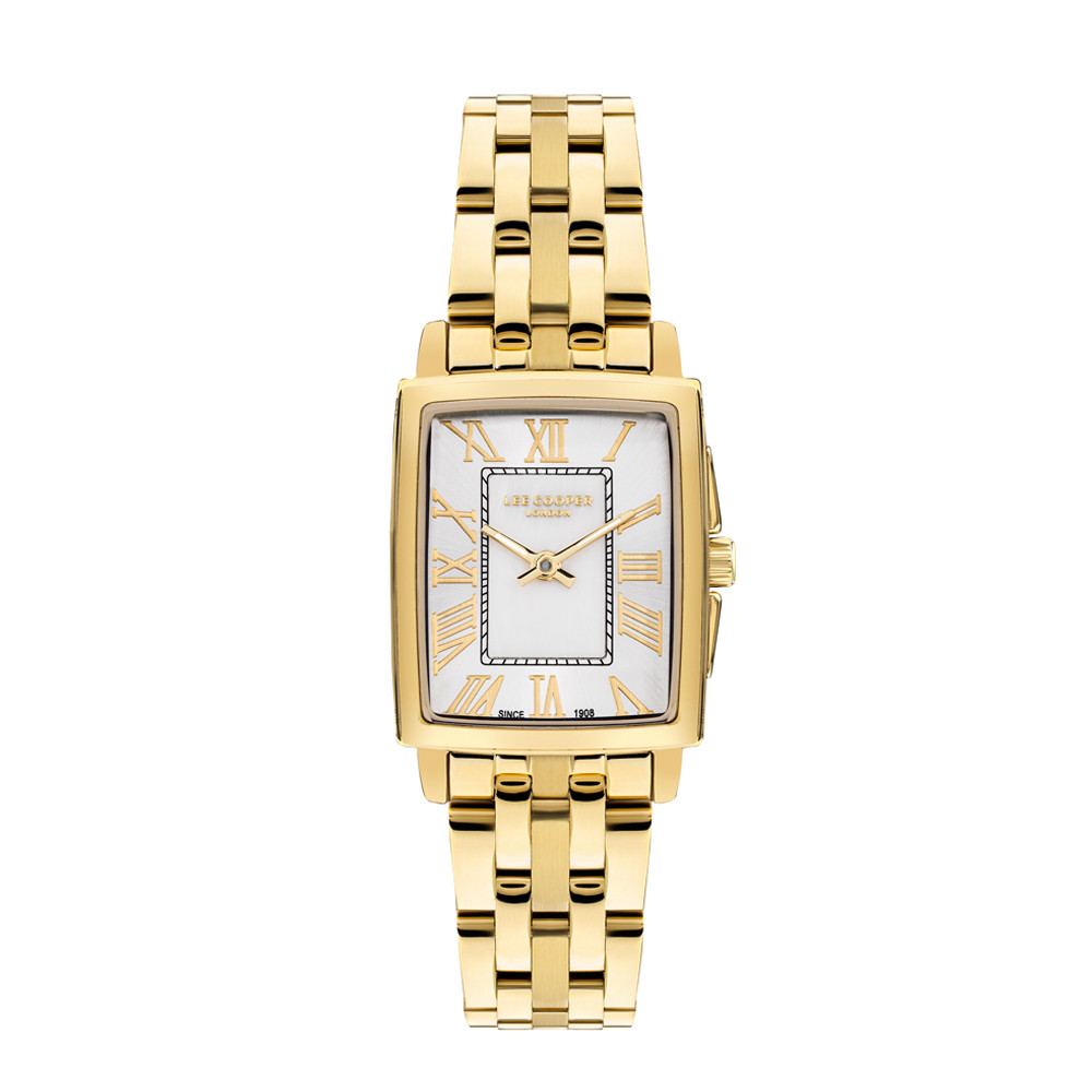 Класически модел дамски часовник Lee Cooper със стилен дизайн от колекцията Elegance. Корпус от супер метал в комбинация с метална верижка. Аналогов дисплей в сив цвят със златисти детайли. Стъкло минерал-кристал. Задвижва се от кварцов механизъм с калибър VJ20C1. Водоустойчивост 3 ATM - допускат се леки пръски, не се препоръчва обилно мокрене.