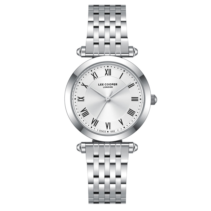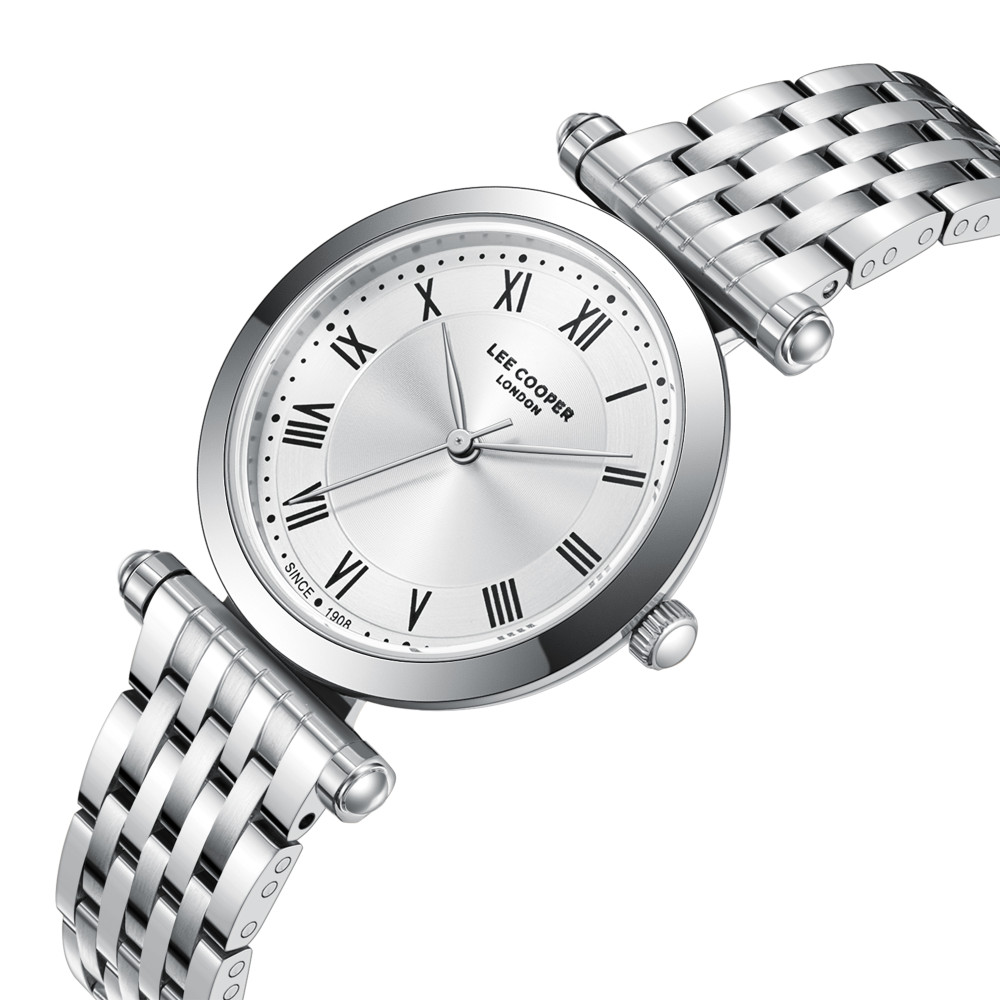 Красив дамски часовник Lee Cooper с модерен дизайн от колекцията Elegance. Корпусът е изработен от супер метал - специална сплав, създадена от марката. Верижката е от неръждаема стомана. Дисплеят е аналогов в сребрист цвят. Стъклото е минерал-кристал. Диаметър на корпуса 32 мм. Часовникът се задвижва от кварцов механизъм. Водоустойчивост 3 ATM - допускат се леки пръски, не се препоръчва обилно мокрене.