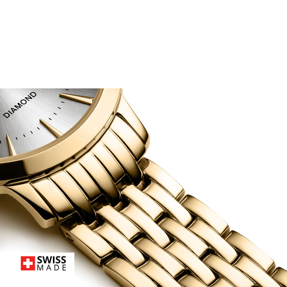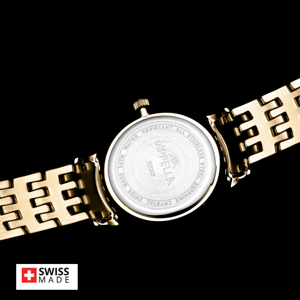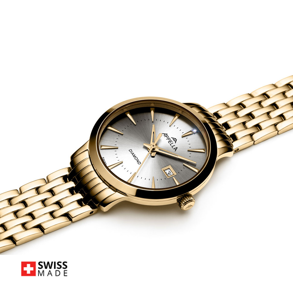 Елегантен дамски часовник Appella L32003.1191DQ. Моделът е със сив циферблат, украсен с нежен диамант и допълнен с индикатор за дата. Корпусът и верижката са изработени от неръждаема стомана.  Стъклото е сапфир-кристал. Задвижва се от кварцов механизъм ETA F04/ RONDA 785 Swiss Made. Диаметър на корпуса 31 мм. Водоустойчивост 3 ATM - допускат се леки пръски, не се препоръчва обилно мокрене.