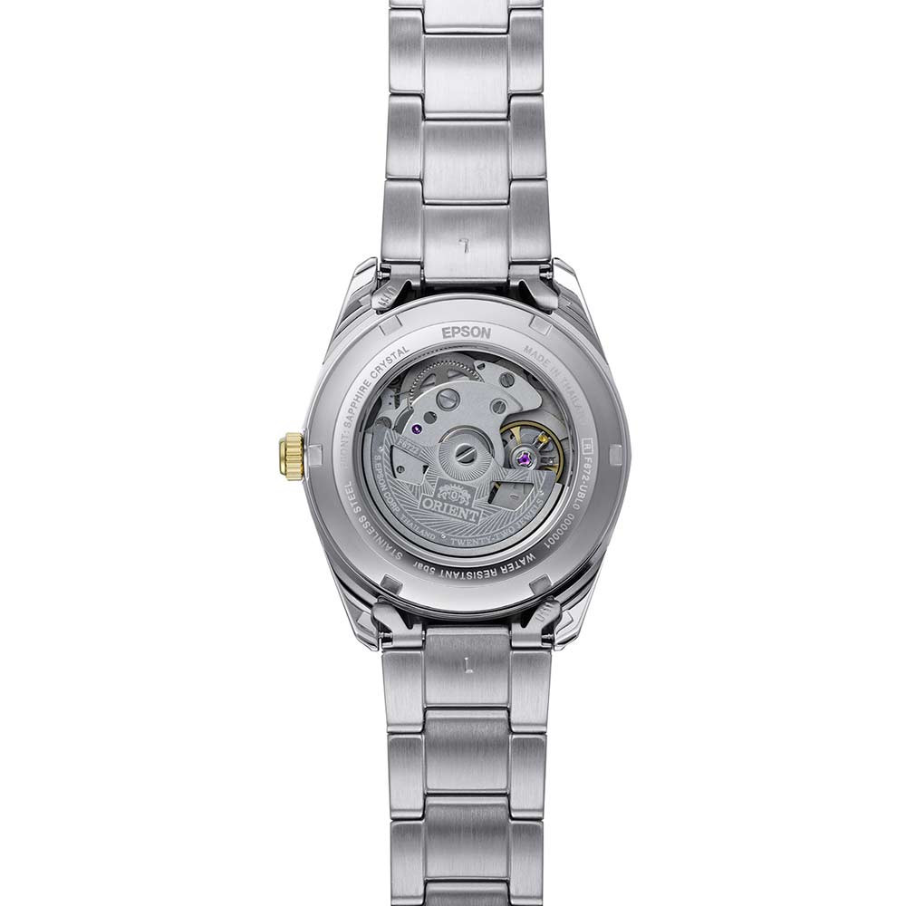 Часовник Orient RA-AC0R01S впечатлява с изискано съчетание между класическа елегантност и съвременен почерк. Сивият циферблат е акцентиран със златисти стрелки и индекси, които придават луксозно излъчване. Луминесцентното покритие върху стрелките осигурява удобство в тъмни условия. Корпусът и верижката са изработени от неръждаема стомана, а сапфир-кристалът гарантира висока устойчивост срещу надрасквания. Прозрачният гръб разкрива автоматичния механизъм F6722 с ръчно навиване, 22 камъка и 40-часов резерв на мощността. С диаметър 38.5 мм и водоустойчивост до 5 ATM, този модел е стилен избор за мъже, които ценят японската прецизност и надеждност.