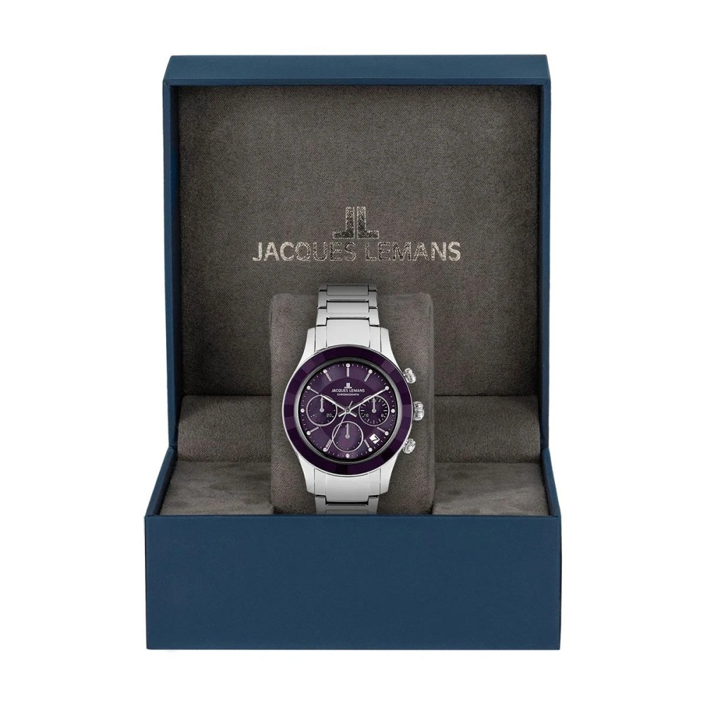 Часовник Jacques Lemans 1-2151M – Дамски хронограф Venice с лилав седеф и Swarovski