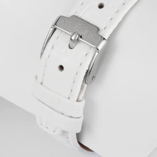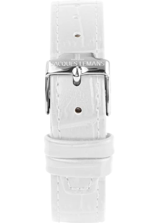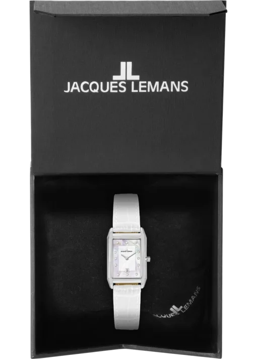 Jacques Lemans 1-2189B е дамски часовник, който съчетава класическа елегантност и изтънчен дизайн. Правоъгълният корпус придава изискан и отличим силует, а белият седефен циферблат създава деликатна игра на светлина. Декоративните камъни Swarovski добавят фин блясък, подчертавайки женствеността на модела. Бялата кожена каишка завършва хармоничната визия, правейки часовника подходящ както за ежедневие, така и за специални поводи.