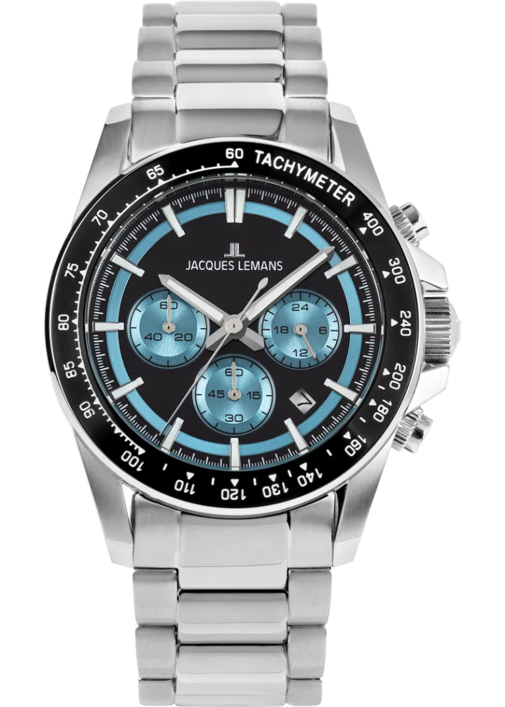 Часовник Jacques Lemans 1-2207B – Мъжки спортен хронограф с черен циферблат и сини акценти