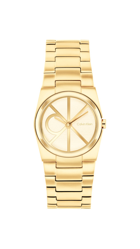 Часовник Calvin Klein 25100127 впечатлява с изисканата си минималистична визия и съвременен блясък. Корпусът от благородна стомана с жълто PVD покритие и диаметър 26 mm придава фин и женствен силует. Моделът е завършен със стоманена верижка с push-button deployment закопчаване, осигуряваща комфорт и надеждност. Минералното стъкло защитава изчистения циферблат, а кварцовият механизъм гарантира точно време. С водоустойчивост 3 ATM часовникът е подходящ за ежедневна употреба, предлагайки стил, практичност и модерен характер в едно.