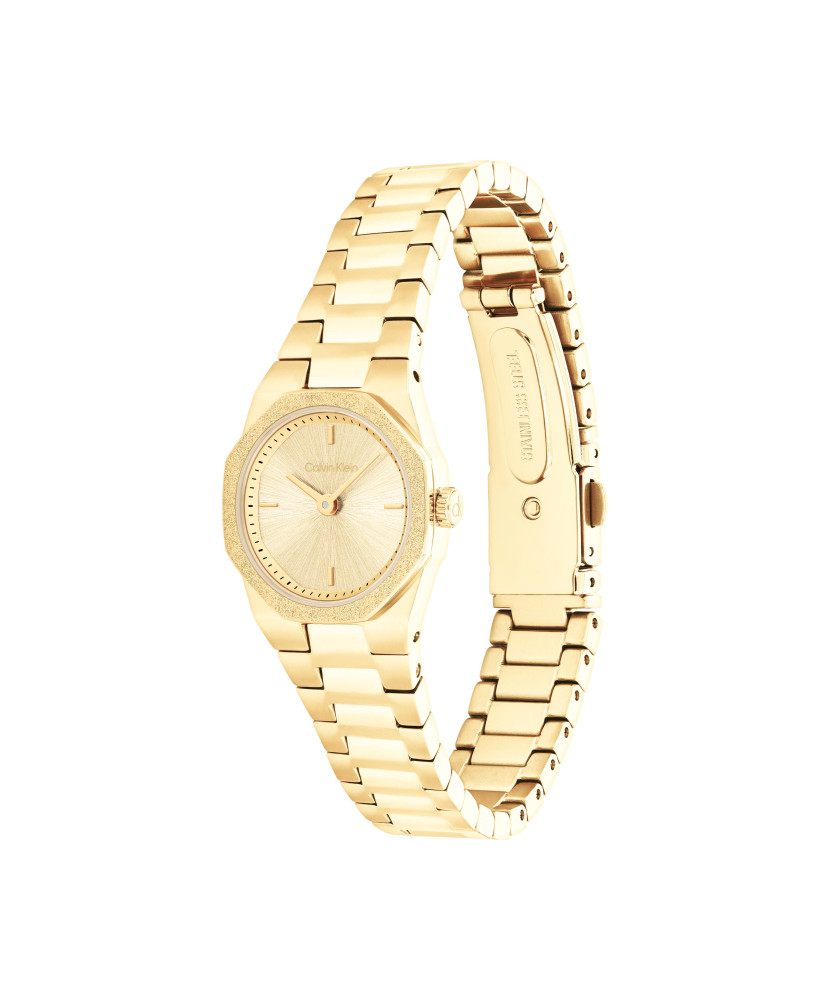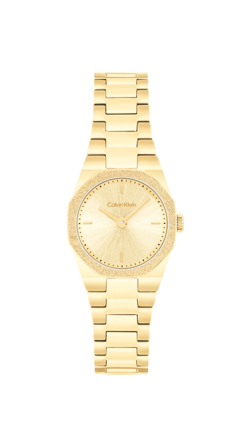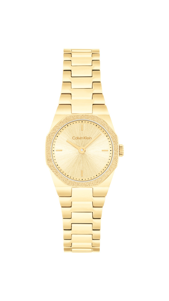 Часовник Calvin Klein 25100142 съчетава чиста линия, съвременна елегантност и характерната минималистична естетика на марката. Компактният корпус от благородна стомана с жълто PVD покритие и диаметър 23 mm придава фин и стилен силует, подходящ за ежедневно носене и официални поводи. Моделът разполага с прецизен кварцов механизъм Seiko Instruments Inc., гарантиращ висока точност, а минералното стъкло осигурява надеждна защита. Стоманената верижка подчертава изящната визия на часовника, а водоустойчивостта 3 ATM го прави устойчив на леки пръски вода.