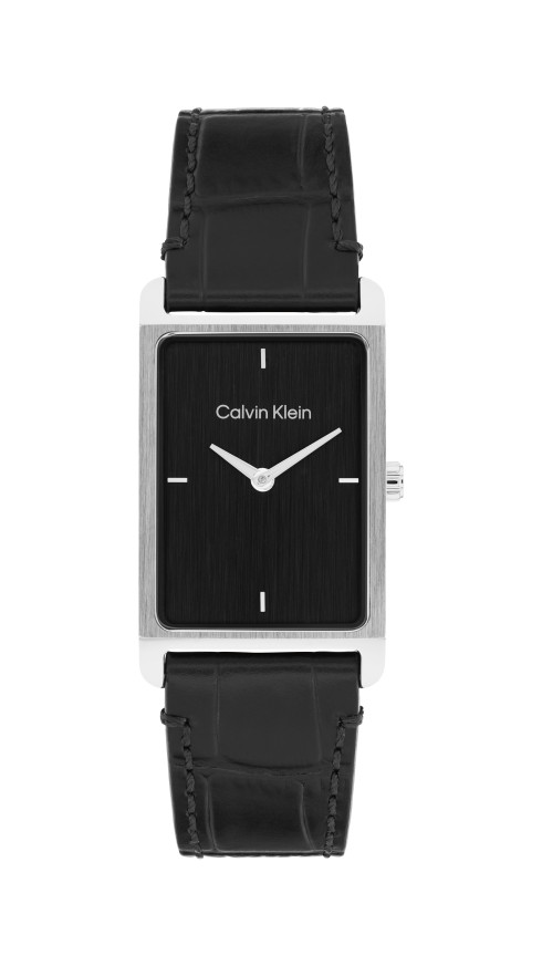 Часовник Calvin Klein 25200528 впечатлява с изискана минималистична естетика и универсален дизайн, подходящ за ежедневна употреба. Корпусът от благородна стомана с диаметър 24 mm подчертава изчистената линия на модела, а черната кожена каишка добавя елегантност и комфорт. Аналоговият циферблат следва характерния за марката Calvin Klein минимализъм и стилна простота. Минералното стъкло защитава часовника, а кварцовият механизъм Seiko Instruments Inc. осигурява точност. С водоустойчивост 3 ATM моделът е отличен избор за ежедневна и елегантна употреба.