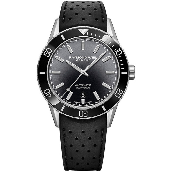 Часовник Raymond Weil Freelancer 2775-SR1-20051 – Мъжки автоматичен дайвър с черен циферблат и каучукова каишка