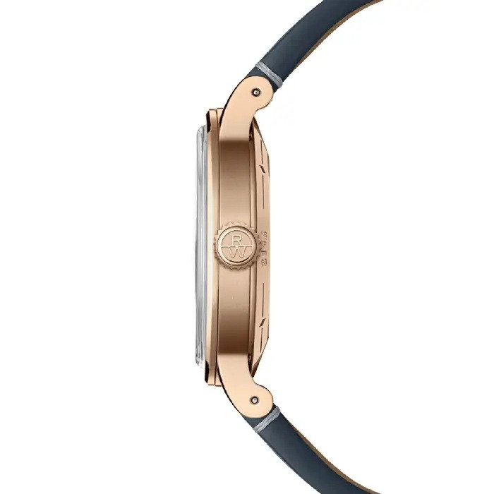 Часовник Raymond Weil Millesime 2945-PC5-50001 е въплъщение на елегантността и швейцарската часовникарска традиция. Корпусът от 316L неръждаема стомана с розово-златно PVD покритие (39.5 мм) придава изискан контраст на тъмносиния циферблат с фаза на луната и фини индекси със Super-LumiNova® покритие. Автоматичният механизъм RW4280 осигурява 41-часов резерв на енергия и се вижда през прозрачния гръб от сапфир кристал, разкривайки детайлната швейцарска изработка. Тъмносинята кожена каишка и водоустойчивостта до 5 ATM допълват впечатляващата визия. Перфектният избор за мъжа, който съчетава класика, стил и техническа прецизност.