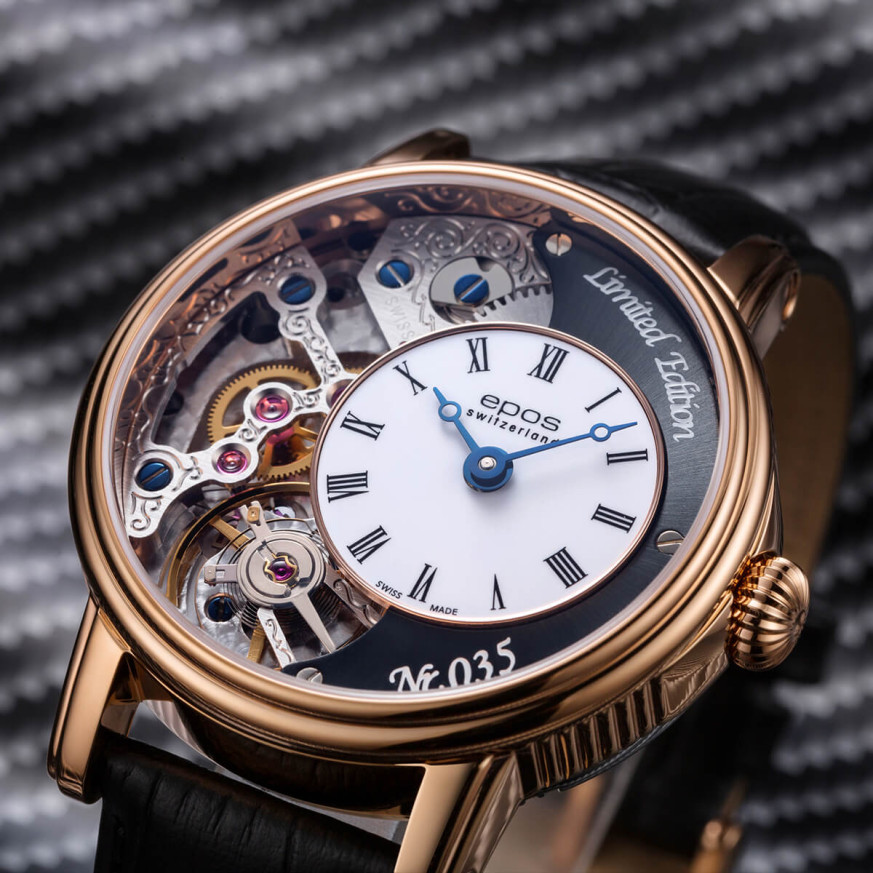 Уникалната Verso модификация е патент на Epos и придава на часовника изцяло различна визия – механичният живот на движението се вижда в реално време.