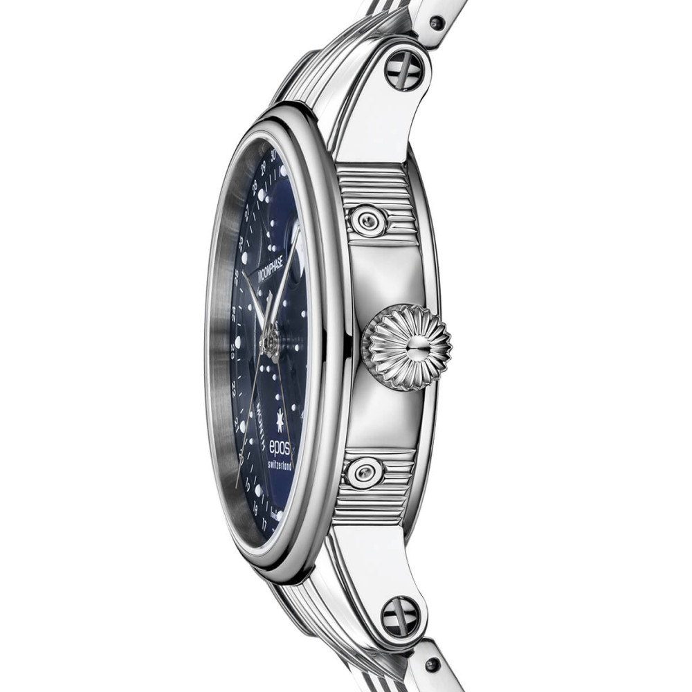 EPOS 3439.322.20.16.30 е изключителен автоматичен часовник с фаза на луната, създаден по оригиналната in-house Big Moon модификация на EPOS.