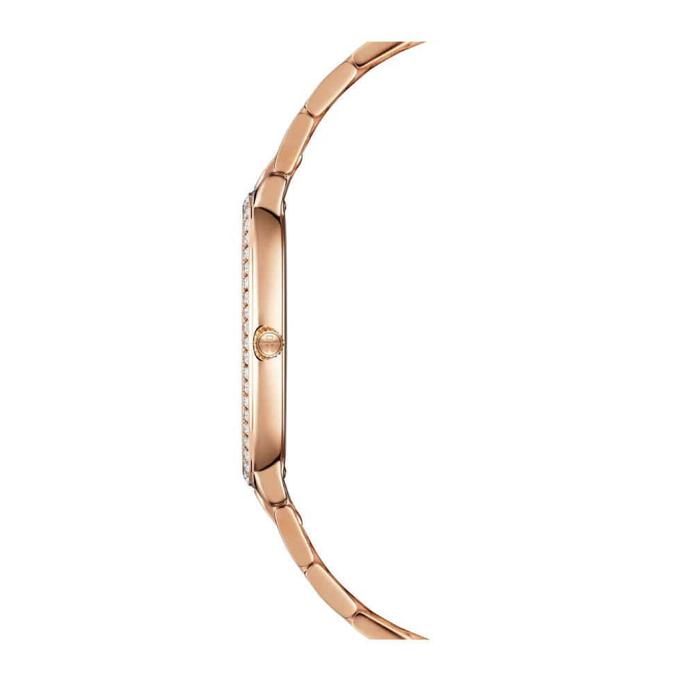 Корпусът е изработен от благородна стомана с PVD покритие от розово злато и е инкрустиран с 48 диаманта с общо тегло 0,35 ct, придаващи блясък и неповторим чар.