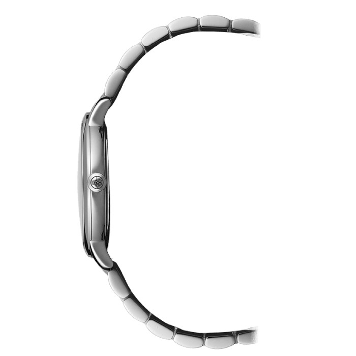 Часовник Raymond Weil Toccata 5485-ST-50001 е елегантен израз на класическата швейцарска традиция, съчетаваща чист дизайн и вечна изтънченост. Моделът разполага с корпус от 316L неръждаема стомана с диаметър 39 мм, син циферблат с индекси и прозорец за дата на 3 часа, придаващи балансирана визия. Надеждният кварцов механизъм осигурява прецизност, докато сапфир кристалът гарантира издръжливост и устойчивост на надраскване. Стоманената верижка с пеперудена закопчалка осигурява комфорт при носене, а водоустойчивостта до 5 ATM добавя функционалност за ежедневието.