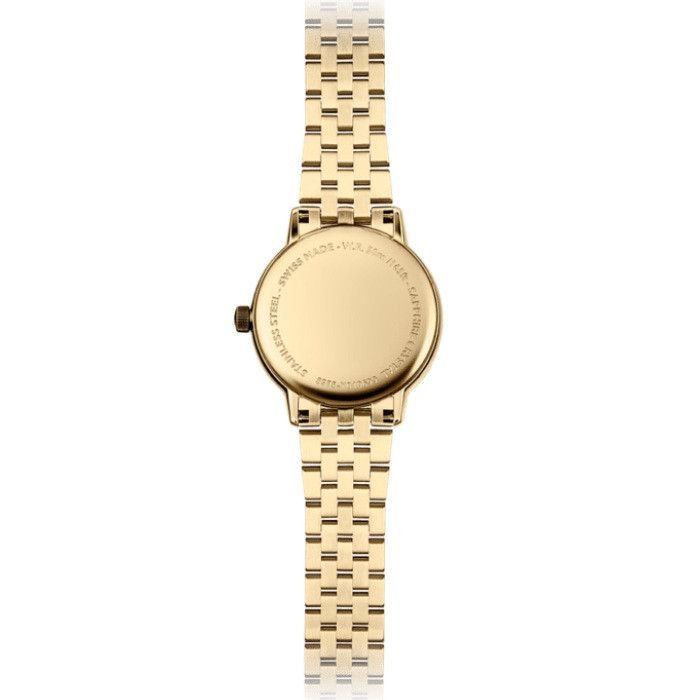 Часовник Raymond Weil Toccata 5985-P-00359 въплъщава вечната класика и изисканата швейцарска елегантност. Изработен от 316L неръждаема стомана с PVD покритие в злато, този модел впечатлява с бял циферблат с римски цифри и прозорец за дата при 3 часа. Компактният корпус с диаметър 29 мм и сапфир кристал осигуряват устойчивост и изтънчен завършек. Задвижван от прецизен швейцарски кварцов механизъм, часовникът е идеален както за официални поводи, така и за всекидневна елегантност. Водоустойчивостта до 5 ATM и златната стоманена верижка го превръщат в символ на изтънчен стил и безкомпромисно качество.