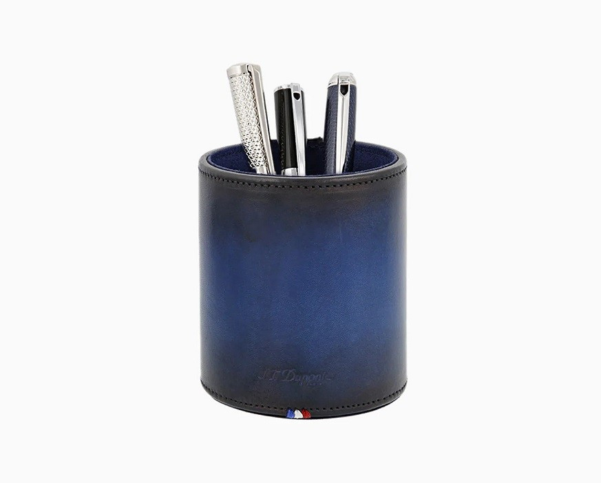 Поставка за пишещи S.T.Dupont ATELIER BLUE LEATHER PEN POT 7108