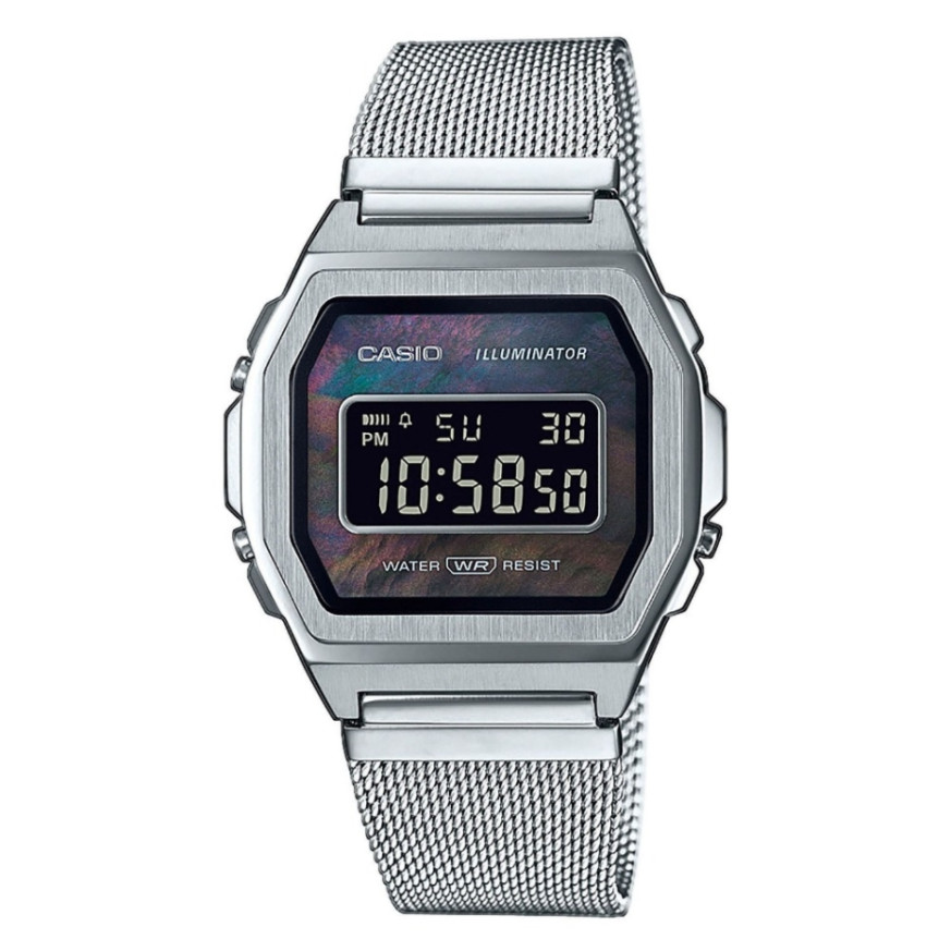 CASIO A1000M-1BEF е стилен дигитален часовник с модерен винтидж характер и изцяло метална изработка. Корпусът от масивна неръждаема стомана в съчетание с фина плетена верижка създава усещане за класа и издръжливост. LED подсветката осигурява отлична четимост във всякакви условия, а ежедневната аларма, хронометърът и автоматичният календар правят модела изключително практичен. С водоустойчивост до 5 ATM и издръжлива батерия с живот до 3 години, CASIO A1000M-1BEF е перфектен избор за ежедневието – съчетавайки функционалност и стил.