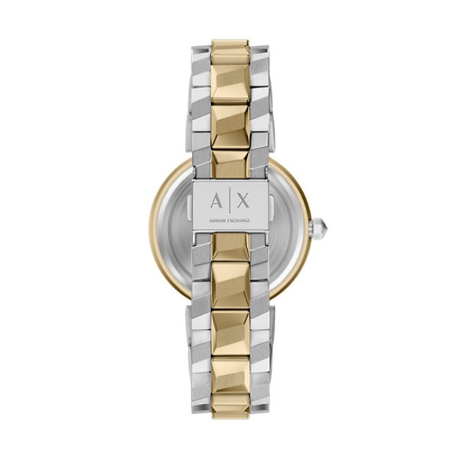 Дамски Часовник Armani Exchange AX4406   Armani Exchange AX4406 от колекция Audelle e дамски кварцов часовник със сребрист кръгъл циферблат, двуцветен корпус от неръждаема стомана с диаметър 34 mm и двуцветна верижка 8 mm, изработена от неръждаема стомана.