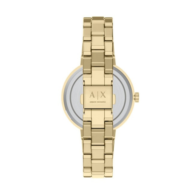 Дамски Часовник Armani Exchange AX5182   Armani Exchange AX5182 от колекция Jackie e дамски кварцов часовник с розов кръгъл циферблат, златист корпус от неръждаема стомана с диаметър 36 mm и златиста верижка 16 mm, изработена от неръждаема стомана.