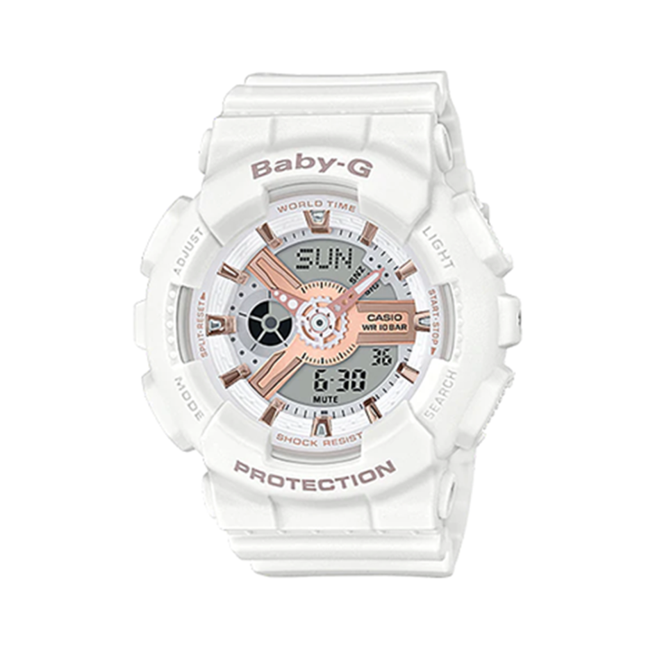 Часовник Casio BA-110RG-7AER – Дамски устойчив модел с розово-златисти акценти от серия BABY-G