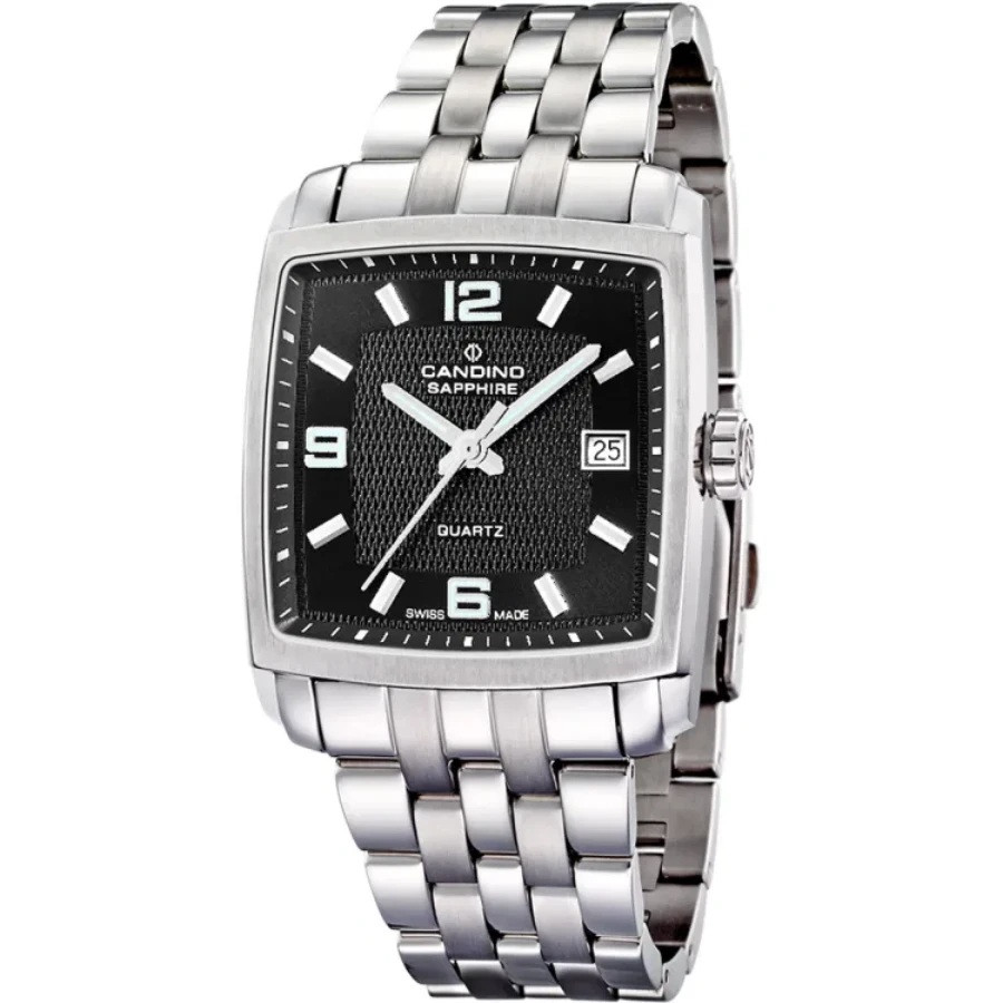 Candino C4372/M е мъжки швейцарски часовник от колекция Candino 1947, който съчетава класическа елегантност и отличим дизайн. Квадратният корпус придава модерно и различно излъчване, а черният циферблат с арабски цифри и индекси осигурява отлична четимост. Изчистената визия без хронограф го прави по-елегантен и универсален избор за ежедневие и бизнес среда. Корпусът от благородна стомана с размер 36 мм гарантира комфортно прилягане, а сапфир-кристалът предпазва от надраскване. Швейцарският кварцов механизъм осигурява надеждност и прецизност.