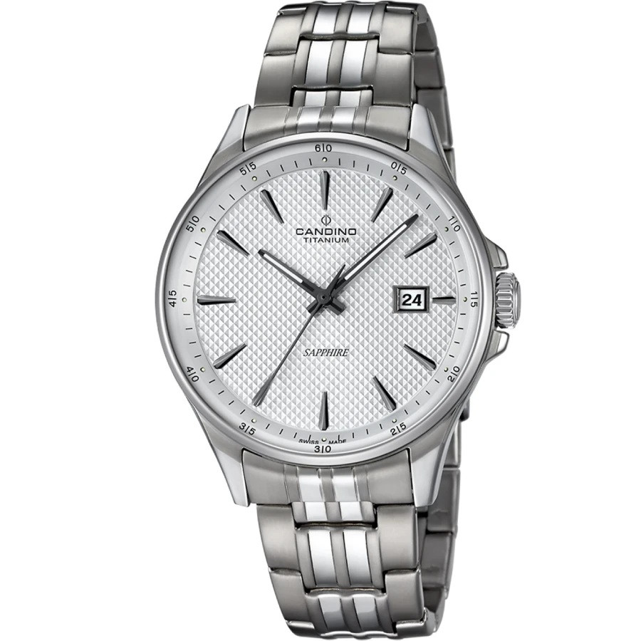 Candino C4606/A от колекция Titanium е мъжки швейцарски часовник, съчетаващ минимализъм, комфорт и надеждност. Корпусът и верижката от титан осигуряват изключително ниско тегло и висока устойчивост, което го прави идеален за ежедневно носене. Сребристият циферблат създава изчистена и универсална визия, допълнена от индекси, дата на позиция 3 часа и луминисцентно покритие за по-добра видимост. Моделът е оборудван със сапфир-кристал, устойчив на надраскване, и швейцарски кварцов механизъм, гарантиращ точност и надеждност.