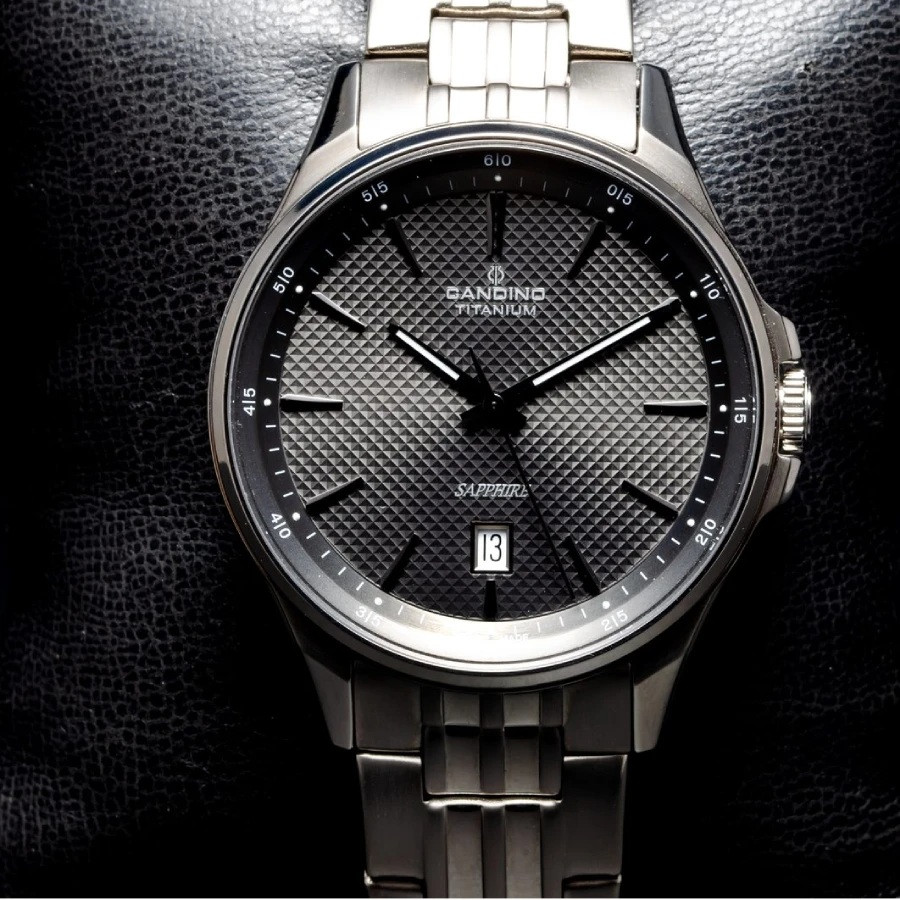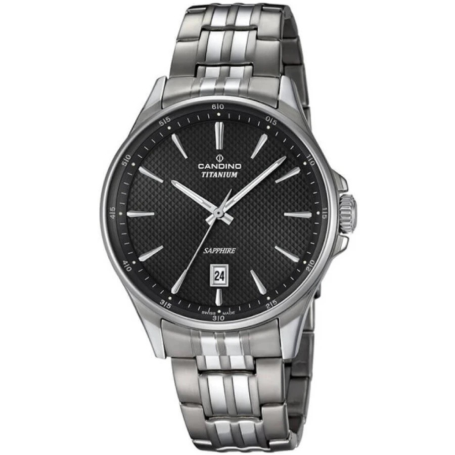 Candino C4606/D от колекция Titanium е мъжки швейцарски часовник, съчетаващ лекота, здравина и класически дизайн. Корпусът и верижката от титан осигуряват изключително ниско тегло и висока устойчивост, което го прави идеален за ежедневно носене. Черният циферблат придава изчистен и универсален стил, допълнен от индекси, дата на позиция 3 часа и луминисцентно покритие за по-добра видимост. Моделът е оборудван със сапфир-кристал, устойчив на надраскване, и швейцарски кварцов механизъм, гарантиращ надеждност и прецизност.