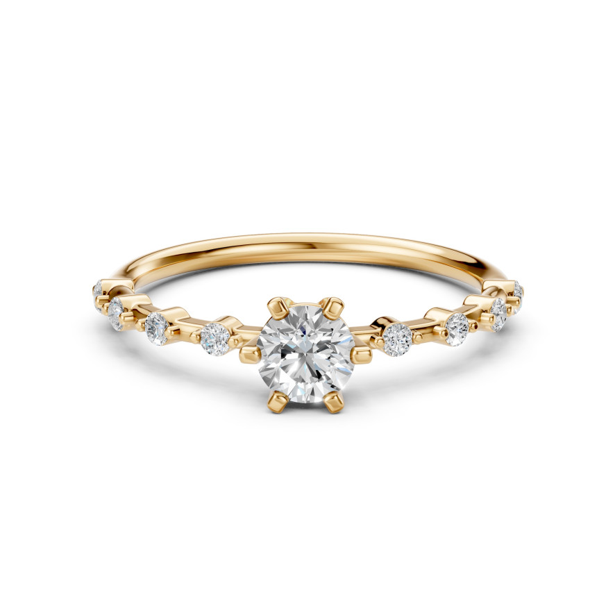 Пръстен с диаманти, сертифицирани от GIA(Gemological Institute of America ) – водещият световен стандарт за независима оценка на качеството.Всеки камък е гравиран микроскопично с уникален идентификационен номер, който съответства на официалния сертификат и гарантира автентичност и проследимост.В доклада на GIA са подробно описани цветът, чистотата, шлифовката и каратовото тегло, както и графична схема на фасетите. Това осигурява пълна прозрачност, професионализъм и високо ниво на доверие при покупката.Обеците са изработени от 18-каратово злато с етичен произход, което не е добивано от конфликтни зони.