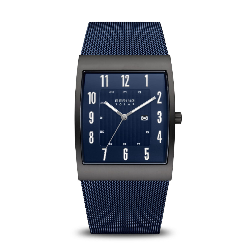 Този мъжки часовник от колекцията BERING Solar съчетава впечатляващ дизайн на тоно с модерна функционалност. Тъмносиният циферблат с бели арабски цифри осигурява ясна четливост, а тънкият прозорец за дата на три часа и дискретната 24-часова скала добавят допълнителна практичност.В основата си соларен механизъм се зарежда от слънчева светлина или изкуствена светлина и работи надеждно в продължение на месеци без смяна на батерията.