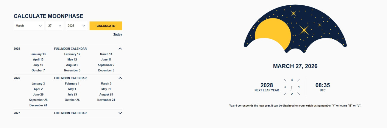 Настройването на часовника според фазата на луната не е просто техническа процедура – това е начин да се свържете с природния ритъм и космическия цикъл. Moonphase усложнението съчетава астрономия, инженерство и естетика, превръщайки часовника в нещо повече от инструмент – в истинско изживяване на китката.