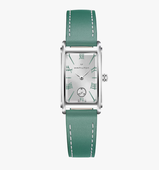 Часовник Hamilton Ardmore Lady H11221014 е елегантен дамски модел от серията American Classic, вдъхновен от арт деко стила на 30-те години. Разполага с корпус от благородна стомана с размер 19 x 27 мм, зелена кожена каишка от естествена телешка кожа и минерално стъкло. Кварцовият механизъм осигурява висока точност, а водоустойчивостта 3 ATM го прави подходящ за ежедневна употреба. Идеален избор за модерната дама, която цени класата и стила.