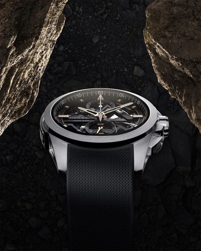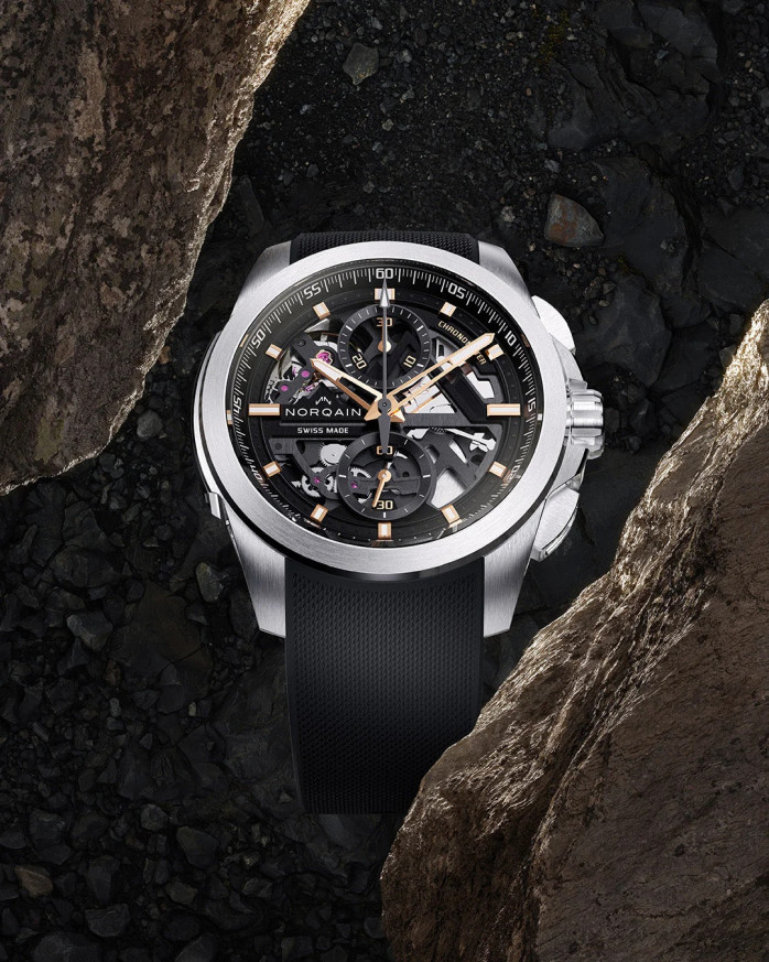 Открийте мануфактурния калибър NORQAIN 8K (NK24/1) – скелетонизиран flyback хронограф, вдъхновен от най-високите върхове на света, известни като „Осемхилядниците“. Този изключителен механичен механизъм се отличава с високо качество и прецизност, като е оборудван с колонно колело за прецизно управление на хронографа и е сертифициран като хронометър (COSC).