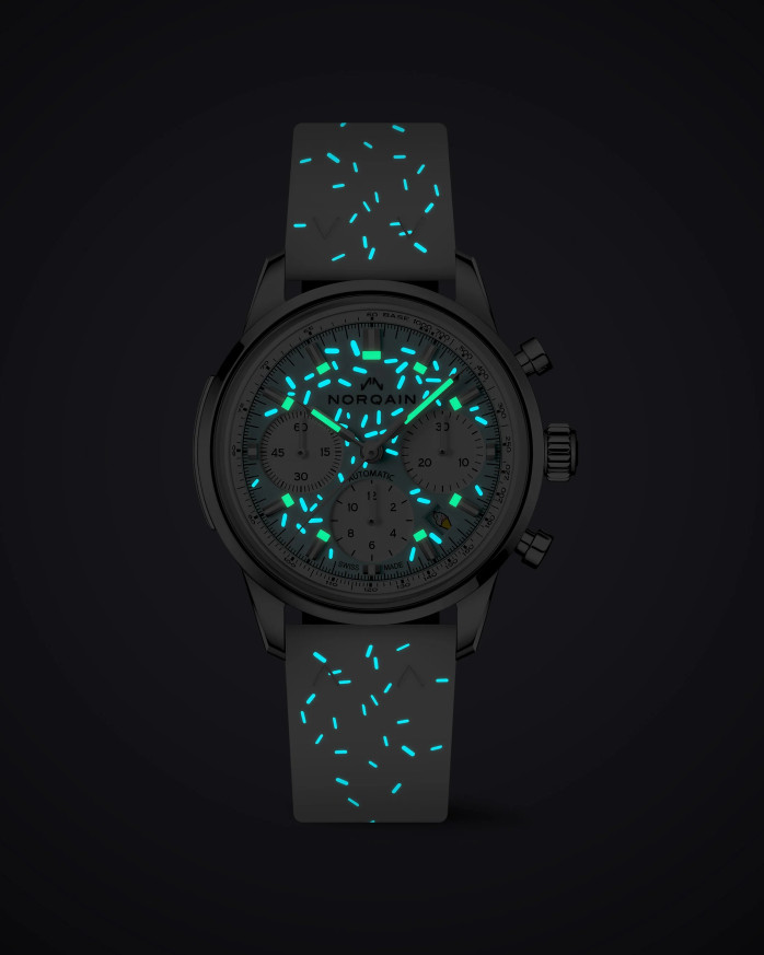 Вътре работи автоматичният хронограф NORQAIN N19, който осигурява надеждност и точност. Това прави модела не само визуално различен, но и технически стабилен.